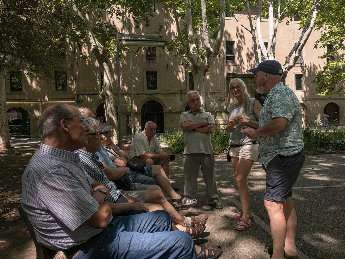Caminar de manera conscient i atenta ens permet reconèixer el nostre entorn. Els detalls dels moments configuren una narrativa desplegada des del moviment i la quietud. Viure la ciutat és travessar-la i acompanyar-la en els seus carrers i les seves places, ens els seus marges, descampats i racons, però també, és observar-la i palpar-la en els moments de repòs, tan necessaris per sentir com passa l’esdevenir. En aquest estadi de coses, apel·lem a dues publicacions de Francesco Careri, una és Pasear, detenerse, i l’altre és Hospedar/se. Als dos llibres conflueixen les idees de moviment i quietud, de tal manera que les dues situacions, aparentment contraposades, interaccionen per a donar sentit a l’altra. Per a constatar-ho a la pràctica i explorar les distintes vicissituds d’aquestes experiències, ens agradaria convidar-vos a compartir dues accions per separat: 1_Passar el dia al costat d’un banc, i 2_Caminar el perímetre de Vic i 2